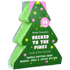 De Decked To The Pines Body Buffer is verrijkt met een drievoudige botersamenstelling van Shea-, Cacao- en Mangoboter, gecombineerd met pure essentiële oliën van sinaasappel en mandarijn. Deze scrub spons exfolieert, verzorgt en laat de huid zijdezacht achter.